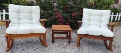 Dış Mekan Bahçe Sandalyesi İroco Sallanan Sandalye Tamamı iroco ağacından el emeği ile imal edilmiştir. Sallanan ve sabit ayaklı modeli mevcuttur. Tik yağı ile yağlanarak ağacın özü korunmuştur. Dış mekanda gün ışığı, rüzgar ve yağmura dayanıklı malzemedir. Koltuk çürümeye böceklenme ve zararlı hastalıklara karşı dirençli bir yapıya sahiptir. Kullanılmadığı zamanlarda kapalı alanlarda tutulması önerilir. Temizliği kolay olup kimyasal içermeyen deterjan ile kolaylıkla bakımı yapılmaktadır. Ürün %100 iroco ağacındadır. Ürün ölçüleri : En : 76 cm Derinlik : 77 cm Yükseklik : 90 cm dir. Oturum alanı : 66 x 70 cm dir. Oturum Yüksekliği : 42 cm Sırt Yüksekliği : 60 cm dir. Minder dahil olarak gönderilmektedir. Otur kısmı Kalın sünger yaslanma kısmı Silikon elyaf olarak üretilmiştir. Kullanılan kumaş dış mekan kumaşıdır.