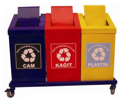 Üzerinde Cam atık,PlastikAtık ve Kağıt Atık logosu bulunmaktadır.